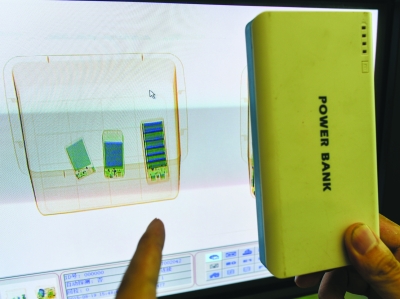 記者觀察發現,大部分乘客都能主動拿出電腦、充電寶等設備通過安檢,也有個別乘客“嫌麻煩”,謊稱沒有充電寶等違禁品,但該乘客背包通過安檢機器時,卻未能蒙混過關。記者在一旁安檢機的屏幕上可以清晰看到包內物品圖像,還有一個由幾節電池組成的方形物品,安檢人員指著屏幕上的方形物品說:“這是充電寶,其內部就是由幾節干電池構成,也不是所有充電寶都不能攜帶,只有額定容量超過2萬毫安和沒有標識的山寨貨不能通過安檢。”經查驗,該充電寶沒有任何標識,不能攜帶。